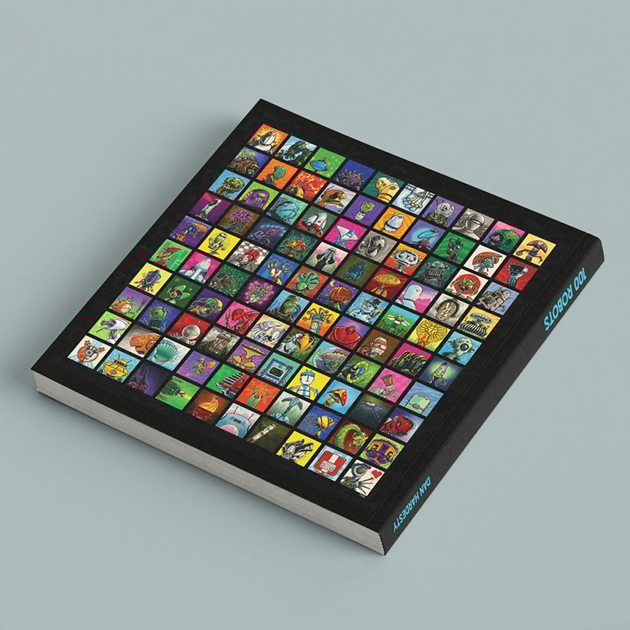 In 2025 I finished up a tribute to robots and created 100 different robot portraits for International Robot Day. This book collects all 100 of them, a few of the original sketches, and a back cover that features the entire group. All of them were inked and colored with a 4 color printing process in mind and feature CMYK in all of its halftoned glory!