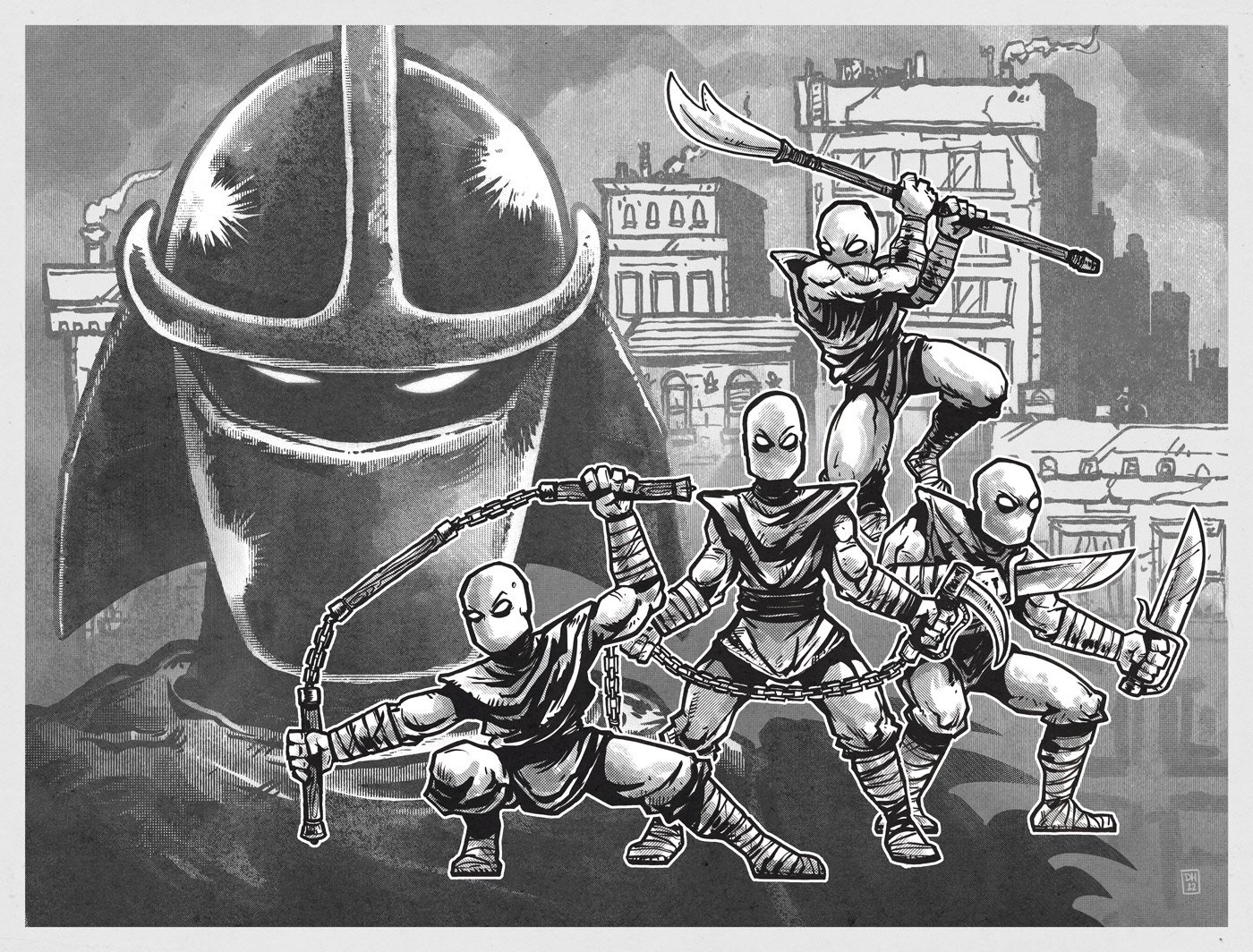 Make your choice grasshopper...will it be the heroes in a half-shell and their wise father? Or their arch nemesis and his minions, The Foot? Both are done in a style that pays tribute to the old school Eastman & Laird style! Buy both prints and save!
